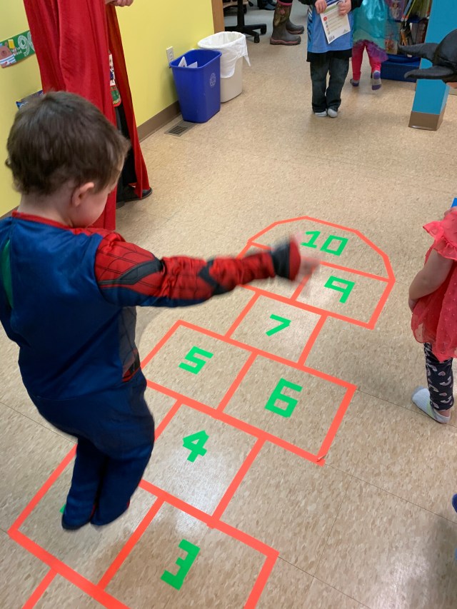 On Thursday, we read “Gingerbread Friends,” the follow-up to Jan Brett’s “Gingerbread Baby.” We also had fun with some of the new materials in the classroom, like the number spots (great for gross motor and mathematical development), and the giant farm puzzle.